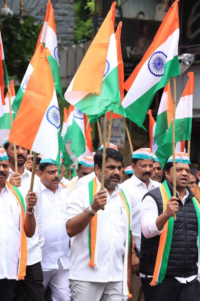 काँग्रेसची तिरंगा यात्रा शहरातील प्रमुख मार्गावरून मार्गस्थ झाली.