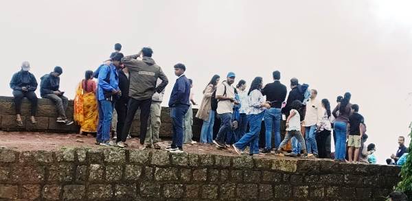 पन्हाळा गडावर पर्यटकांची गर्दी : दाट धुक्यात हरवला पन्हाळा..