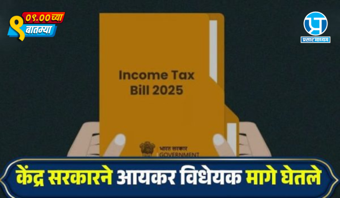 केंद्र सरकारने फेब्रुवारी २०२५ मध्ये लोकसभेत मांडलेले नवीन आयकर विधेयक आज मागे घेतले आहे. १३ फेब्रुवारी रोजी हे विधेयक लोकसभेत सादर करून निवड समितीकडे छाननीसाठी पाठवण्यात आले होते. भाजप खासदार बैजयंत पांडा यांच्या अध्यक्षतेखालील समितीने या विधेयकाचा सविस्तर आढावा घेत अनेक सुधारणा सुचवल्या होत्या. समितीचा अहवाल २२ जुलै २०२५ रोजी संसदेत सादर करण्यात आला होता. त्यानंतर केंद्रीय मंत्रिमंडळाने सुधारित विधेयकाला मंजुरी दिली असून ते सोमवार, ११ ऑगस्ट २०२५ रोजी लोकसभेत पुन्हा मांडले जाणार आहे.