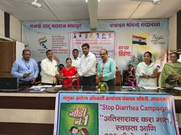 राधानगरी पंचायत समितीच्या आरोग्य विभागाच्या वतीने अतिसार थांबवा’ या जनजागृती अभियानाचे आयोजन केले होते. यावेळी गटविकास अधिकारी डॉ. संदीप भंडारी यांनी उपस्थित तालुक्यातील आरोग्य विभागाच्या कर्मचाऱ्यांना मार्गदर्शन केले. यावेळी बोलताना ते म्हणाले अतिसारामुळे शरीरात पाणी आणि क्षार कमी होतात. त्यामुळे रुग्ण अशक्त, व्याकुळ होतो. ही परिस्थिती टाळण्यासाठी अगोदरच योग्य ती खबरदारी घेणे गरजेचे आहे.तर नागरिकांनी पावसाळ्याच्या दिवसात ताजे आणि सकस अन्न घ्या, उकळून, गाळून पाणी प्या आणि सार्वजनिक ठिकाणी स्वच्छता राखा.