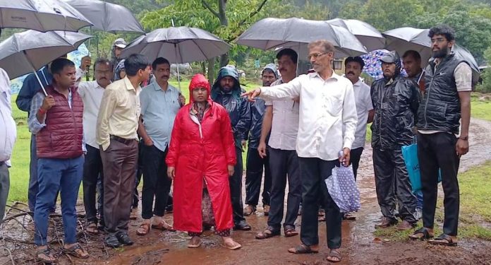 Radhanagari Tehsildar inspects the site in the Patpanhala Dhangarwada road case.