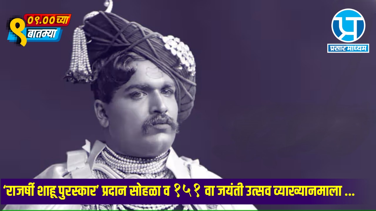 राजर्षी शाहू छत्रपती मेमोरियल ट्रस्टतर्फे शनिवार, दि. २१ जून ते बुधवार दि. २५ जून पर्यंत राजर्षी शाहू व्याख्यानमाला तसेच दि. २६ जून रोजी ‘राजर्षी शाहू पुरस्कार’ ज्येष्ठ नाट्य आणि चित्रपट दिग्दर्शक पद्मश्री डॉ. जब्बार पटेल यांना खासदार श्रीमंत शाहू महाराज यांच्या हस्ते आणि सार्वजनिक आरोग्य आणि कुटुंब कल्याणमंत्री तथा पालकमंत्री प्रकाश आबिटकर यांच्या अध्यतेखाली प्रदान करण्यात येणार आहे. या कार्यक्रमास नागरिकांनी मोठ्या संख्येने उपस्थित रहावे, असे आवाहन जिल्हाधिकारी व राजर्षी शाहू छत्रपती मेमोरियल ट्रस्टचे अध्यक्ष अमोल येडगे यांनी केले आहे.