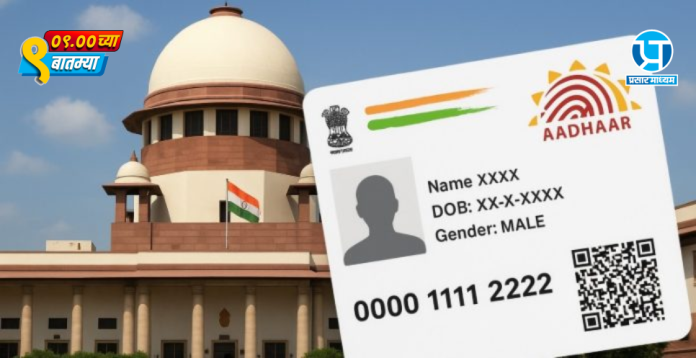 बिहारमधील मतदार यादी सुधारणा प्रक्रियेवर सर्वोच्च न्यायालयाने आज महत्त्वपूर्ण आदेश दिला आहे. मतदार यादीत दुरुस्ती करण्यासाठी लागणाऱ्या ११ कागदपत्रांच्या यादीत आधार कार्डचा समावेश करण्यात यावा, असे स्पष्ट करून कोर्टाने लाखो मतदारांना दिलासा दिला आहे.