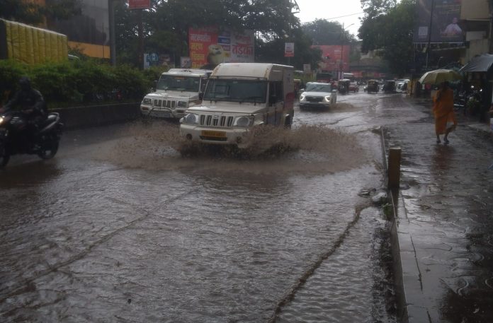 कोल्हापुरात कालपासून पावसास पुन्हा सुरुवात झाली. काल रिमझीम स्वरूपाचा पाऊस होता. मात्र आज सकाळी सहा वाजल्यापासून पावसाने जोरदार सुरुवात केली. फक्त तीन तासात कोल्हापुरातील अनेक रस्त्यावर पाणीच पाणी झाले. भल्या सकाळी पावसाने सुरुवात केल्याने सारीच कामे रेगाळली. आज कोल्हापुरात कवाळ पंचमी. अंबाबाई ते त्र्यंबोली पालखी मार्गावर रांगोळी रेखाटली जाते. मात्र एकसारख्या पडणाऱ्या पावसामुळे सजावटीत अडथळा निर्माण झाला.